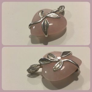 Such a sweet pendant with pink stone wrapped in detailed leaves in .925 Sterling Silver. Stamp in pic.