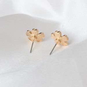 Inspired by Parisian Forget Me Nots, Pretty in Pink Pearly Flower Stud Earrings are delicately crafted with gold heart petals and a center pearl.