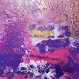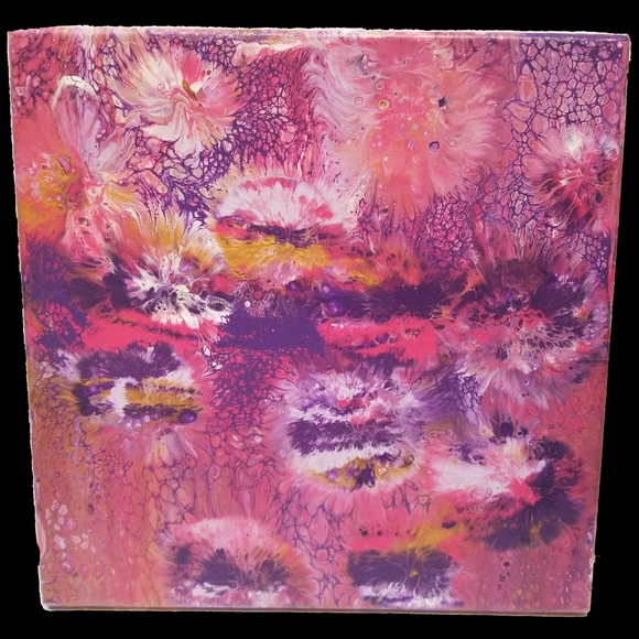 Acrylic Pour Painting in Pinks, Purples and Gold! Brighten up any room with this piece. The hottest artwork today. This painting is 12" x 12" If you would like a special size or colors contact me at foxxmultimedia@aol.com Tamala's Art Today