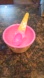Set of two pink and tan ice cream bowls with matching spoons. Fun and playful design.