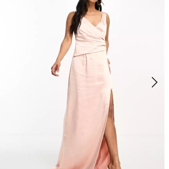 Pretty Lavish Bridesmaid Esmee wrap satin maxi dress in blush