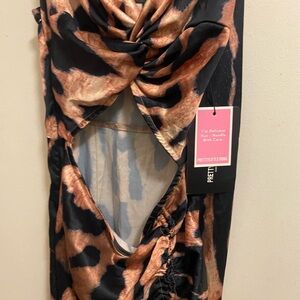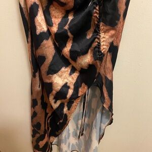 Pretty Litte Thing Womens Satin Tank Maxi Dress Size 4 Leopard Print Cutout NWT