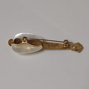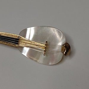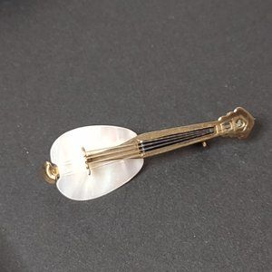 Pretty Little Metal And Shell Guitar Brooch. Has A Fair Amount Of Tarnish And Wear On The Back. Check Out My Closet For Other Great Items!!! Thank You For Considering Making A Purchase.