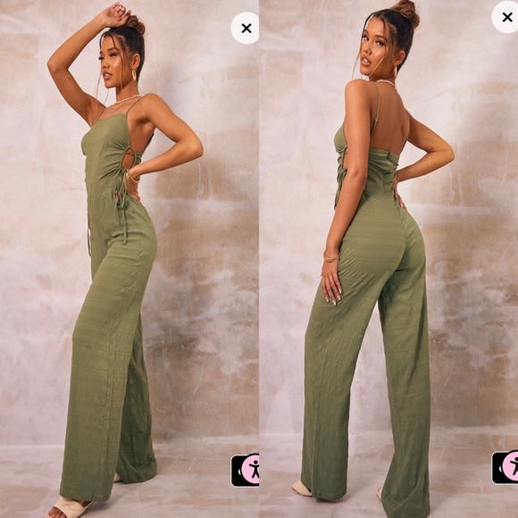 *Sold on Mercari* Cute NWOT jumpsuit. It’s very long and not top heavy friendly. I’m 5”1 and a 38D.