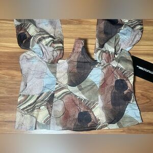Pretty Little Thing Beige Woven Abstract Print Cross Over Zip Top Size 4