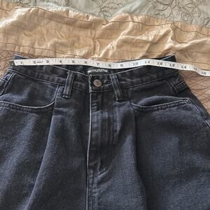 Trendy wide leg black jeans. Pair with a crop top or a fitted tee and you are all set. These also have pleats from the front pockets. Stock photos are similar jeans but not exactly. Jeans have signs of wear (there are some frays from stitiching) but are in great used condition. These jeans are also heavy.