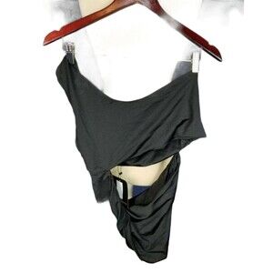 Pretty Little Thing Black One Shoulder Cut Out Bathing Suit One Piece Size 16