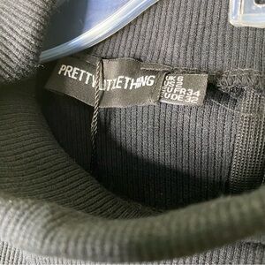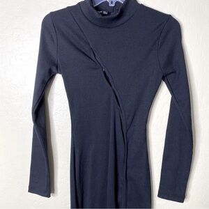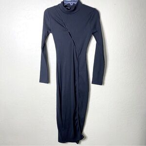Pretty Little Thing Black Ribbed Knit Slit Midi Dress Size 2