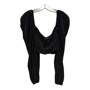 Pretty Little Thing Black Velvet Ribbed Cropped Top Long Puff Sleeve Square Neck