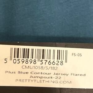 Pretty Little Thing Blue Contour Jersey Flared  Deep V Neck Jumpsuit New 1X