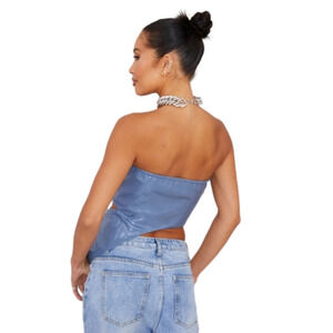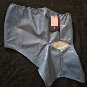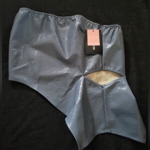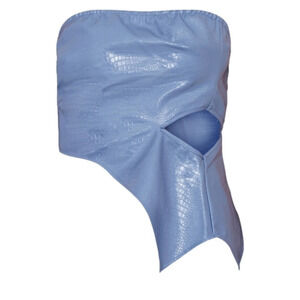 Pretty Little Thing Blue Faux Leather Asymmetrical Snakeskin Top with Cutout