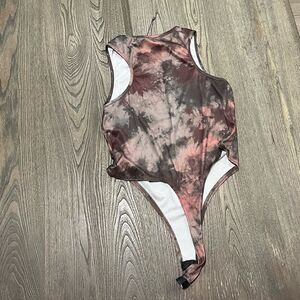 Pretty Little Thing Bodysuit Tie Dye Ribbed Sleeveless Crewneck Thong Brown 12