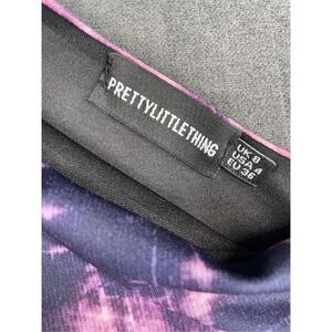 This PrettyLittleThing one shoulder bodysuit features a bold purple and pink tie dye print with a sleek, fitted silhouette. The asymmetrical neckline and long sleeve add a trendy, edgy touch perfect for Y2K-inspired outfits or festival looks. Marked size USA 4, fits like an XS. In excellent condition with no visible flaws. Please see photos for measurements.