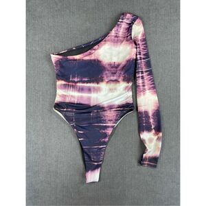 Pretty Little Thing Bodysuit Womens XS Purple Tie Dye One Shoulder Y2K Festival
