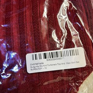 Pretty Little Thing - Burgundy Rib Knit Turtleneck Top And Maxi Skirt Set