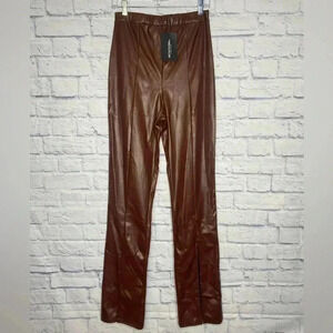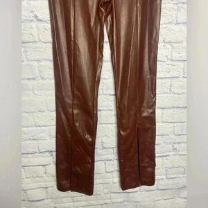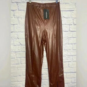 Pretty Little Thing Chocolate Faux Leather Seam Detail Split Hem Pants