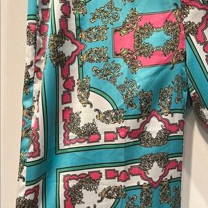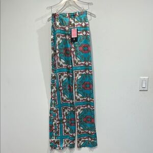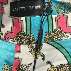 Pretty Little Thing Colorful Teal Pink Patterned Wide-Leg Pants new w tag 6