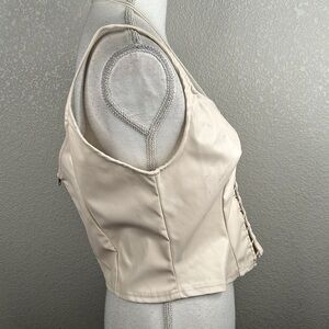 Pretty Little Thing Cream Caged Back Zipper Sleeveless Top Size L New with tags
