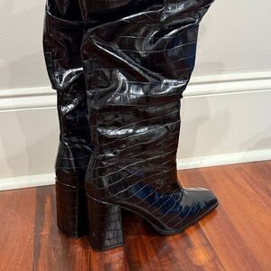 Pretty Little Thing Croc Embossed Long Ruched Boots Size 9
