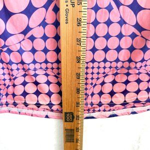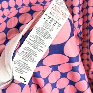 US Size 12 UK Size 16 Pink and purple all over fish eye dots patterns Add drama to your weekend wardrobe Slinky material with cut out detail Stretchy for extra comfort In excellent condition