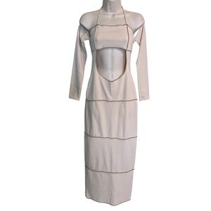 Pretty Little Thing Cut Out Cream Bodycon Dress Size 6