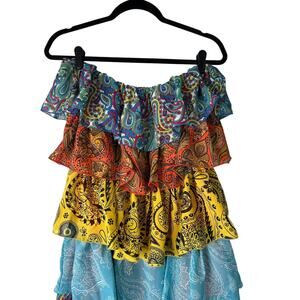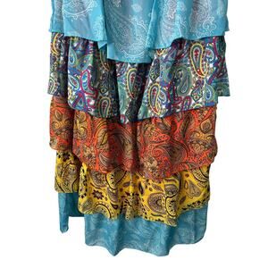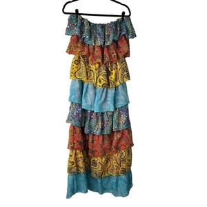 Pretty Little Thing Dress Size 8 Multicolor Patchwork Paisley Print Tiered Maxi