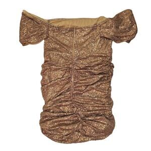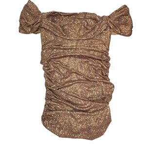 PrettyLittleThing Dress Womens 16 Brown Sequin Off Shoulder Mini Party Ruched