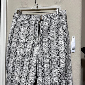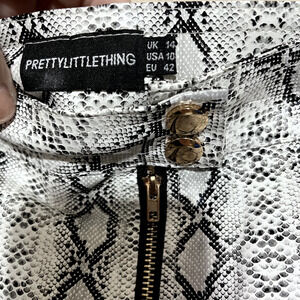 Pretty Little Thing Faux Leather Pants Sz 10 Pull On White Snake reptile PU