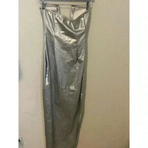 Pretty Little Thing Fave Instagram/TikTok Silver PU Extreme V Bar Midaxi…