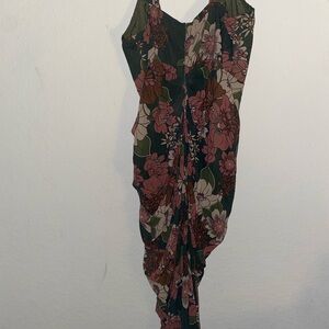 Pretty Little Thing Floral Green Pink Corset Underwire Draped Coquette Dress 12
