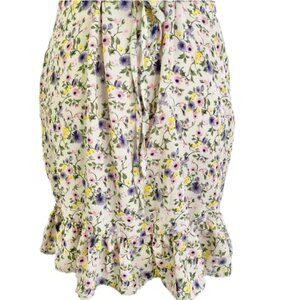 Pretty Little Thing Floral Print Corset Waist Ruffle Hem Mini Dress Stone Size 2