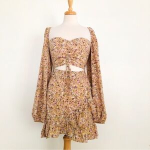 Pretty Little Thing Floral Print Cut Out Puff Sleeve Dress Plus Size 12 NWT