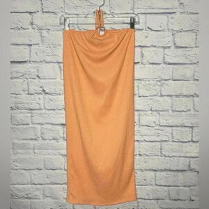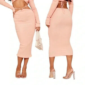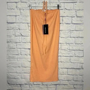 Pretty Little Thing Gauze Peach Textured Tie Waist Midi Skirt