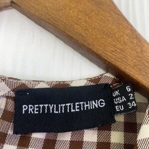 Pretty Little Thing - Gingham Brown & White MIDI Short Sleeve Ruffle Dress SZ 2