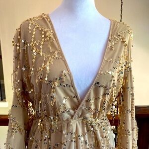 Used Good Condition. Pretty Little Thing Gold Party Sequin Bodycon Mini Dress Size 8