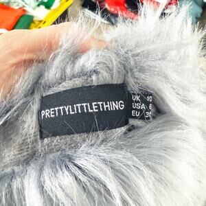 Pretty Little Thing Gray Faux Fur Bubble Coat Women's Size 6 EUC Open Front