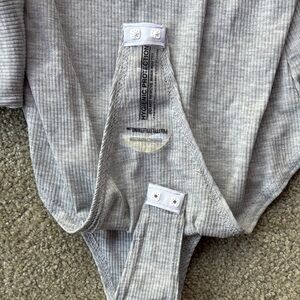 NWT PLT gray ribbed bodysuit, still has hygienic sticker on.