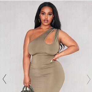 Pretty Little Thing Green Mini Dress Size- 3X One shoulder Cut Out Dress NWT