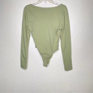 Pretty Little Thing Green Ruched Long Sleeve Bodysuit Size 2