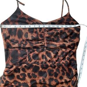 Pretty Little Thing Leopard Print Ruched Sides Mesh Center Midi Bodycon Size 12