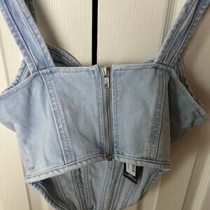 Pretty Little Thing Light Blue Wash Dip Hem Bust Cup Denim Corset 0