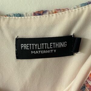 Pretty Little Thing Maternity Pink Floral Plisse Mini Dress Long Sleeve Fitted