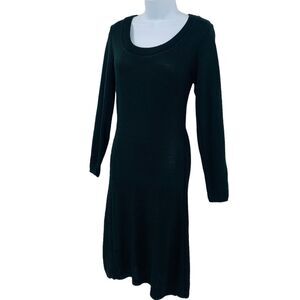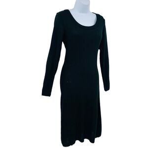 PrettyLIttleThing Black Midi Sweater dress with scoop neckline. Bodycon form fitting design. Acrylic