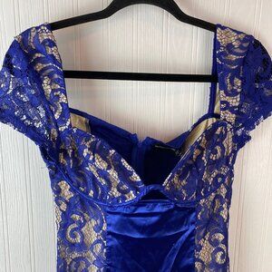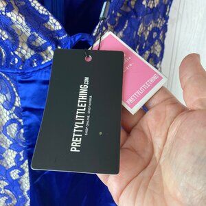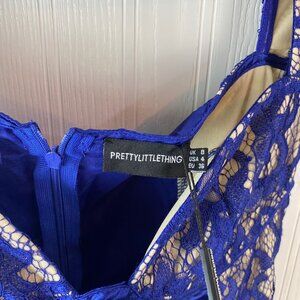 Pretty Little Thing Midnight Blue Lace Dress Cap sleeve Size 4 NWT