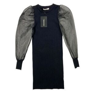Pretty Little Thing Mini Dress Women Sz M/L Black Sheer Puff Sleeve Elegant Chic