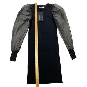 - Description: Pretty Little Thing Mini Dress Women Sz M/L Black Sheer Puff Sleeve Elegant Chic