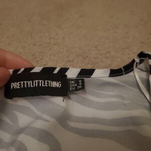 Pretty Little Thing Monochrome Zebra Print Tie Bust Cut Out Bodycon Dress