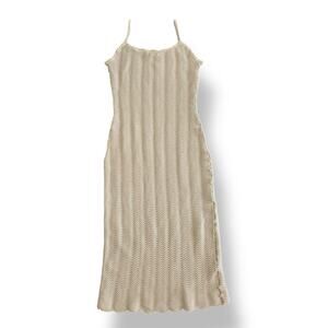Pretty Little Thing NWT Wave Knit Maxi Dress Womens Size L in Taupe Beachy Boho