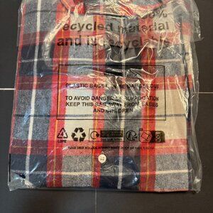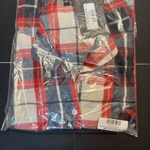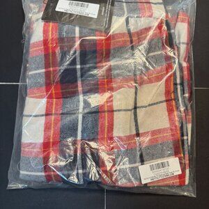 This stylish and comfortable pyjama set features a classic navy and red checked pattern. Designed for plus sizes, it includes a short-sleeve button-up top and matching long bottoms, ensuring a relaxed fit for a cozy night's sleep. Crafted for both style and practicality.