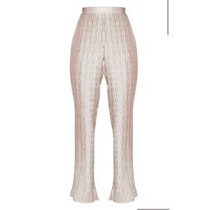 Pretty Little Thing Oatmeal Plissé Wide Leg Pants US 6, High Waist Trousers